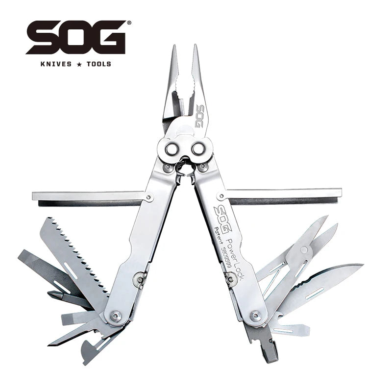 As one of the original multi-tool manufacturers, we have learned quite a bit over the years. Including this 18-tool workhorse multi-tool built around SOG's Compound Leverage mechanism. You have let us know, that quick access is a must. Just flip our tools out with one hand and see for yourself how well we listened. Versatility in the field is a necessity and heavy duty construction provides access. There is also a myriad of features that you might not readily see, like our saws cut faster and our files shave better. And while you are at it check out one of the best scissors in the business. Does all this make sense? You bet, which is why leading military forces choose SOG! Item S60N-CP