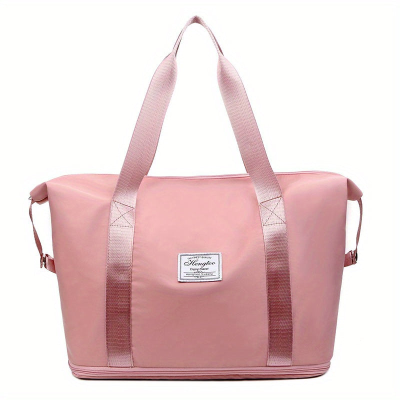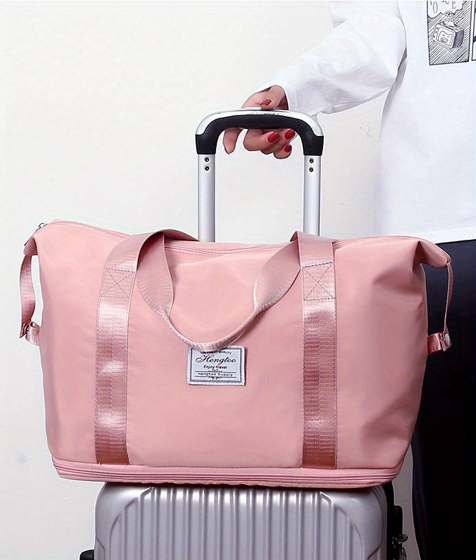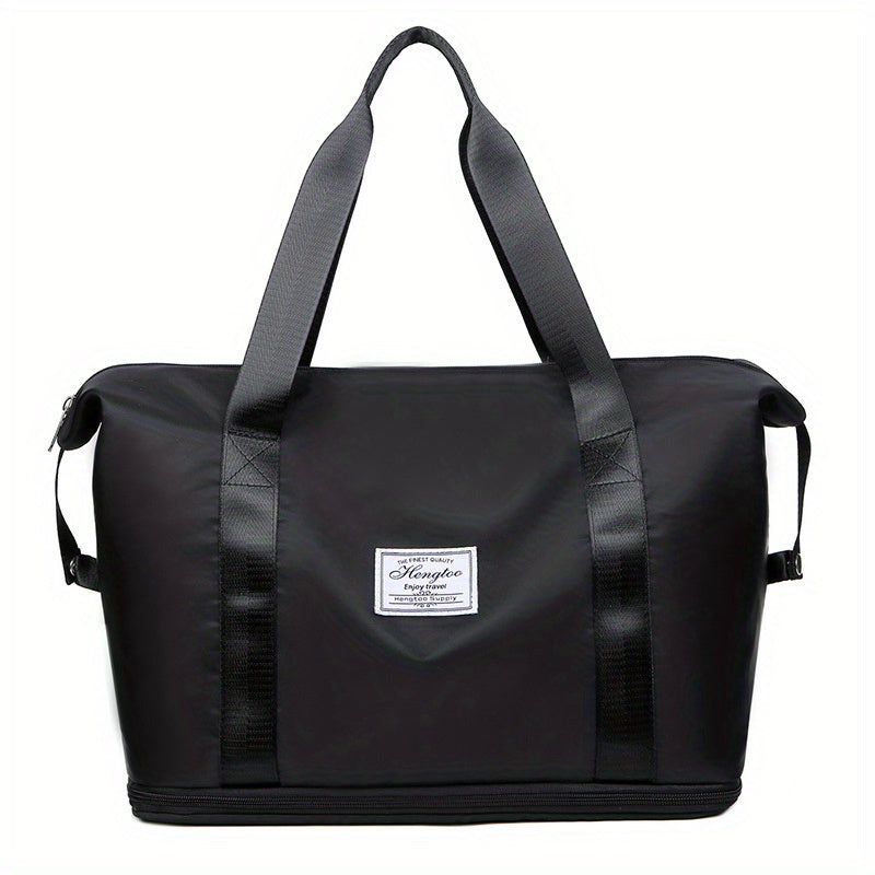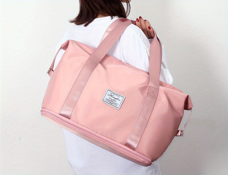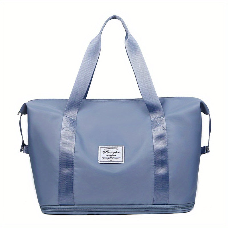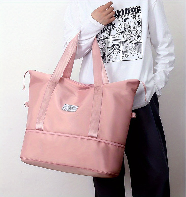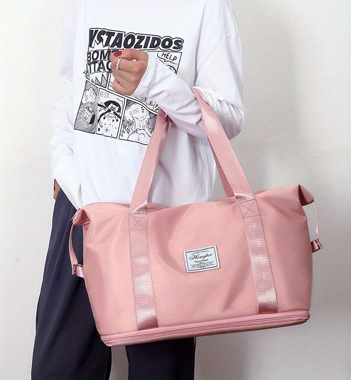 Solid Color Travel Duffel Bag, Large Capacity Foldable Lightweight Weekender Bag, Dry And Wet Separation Overnight Bag