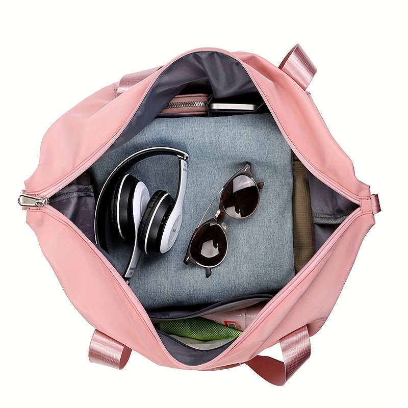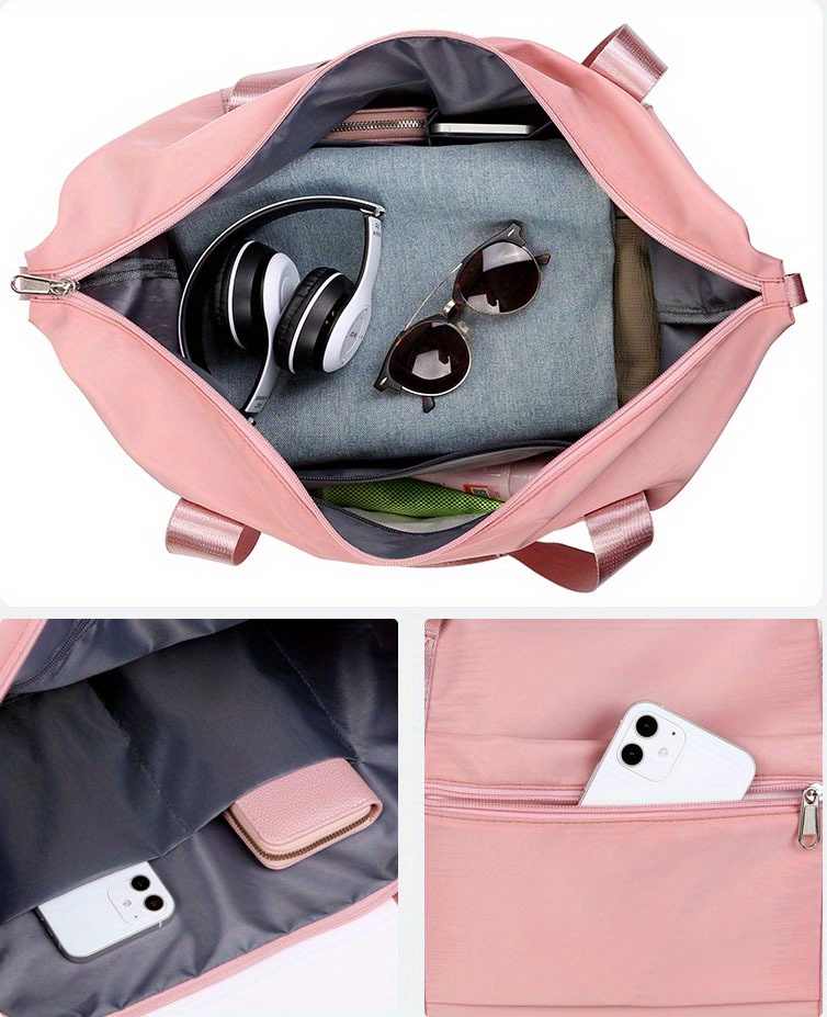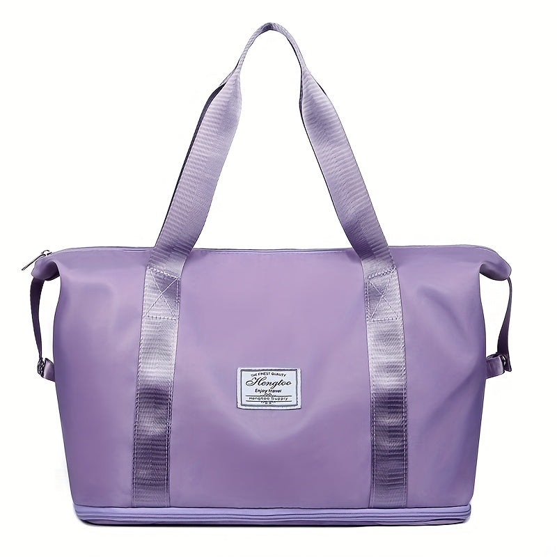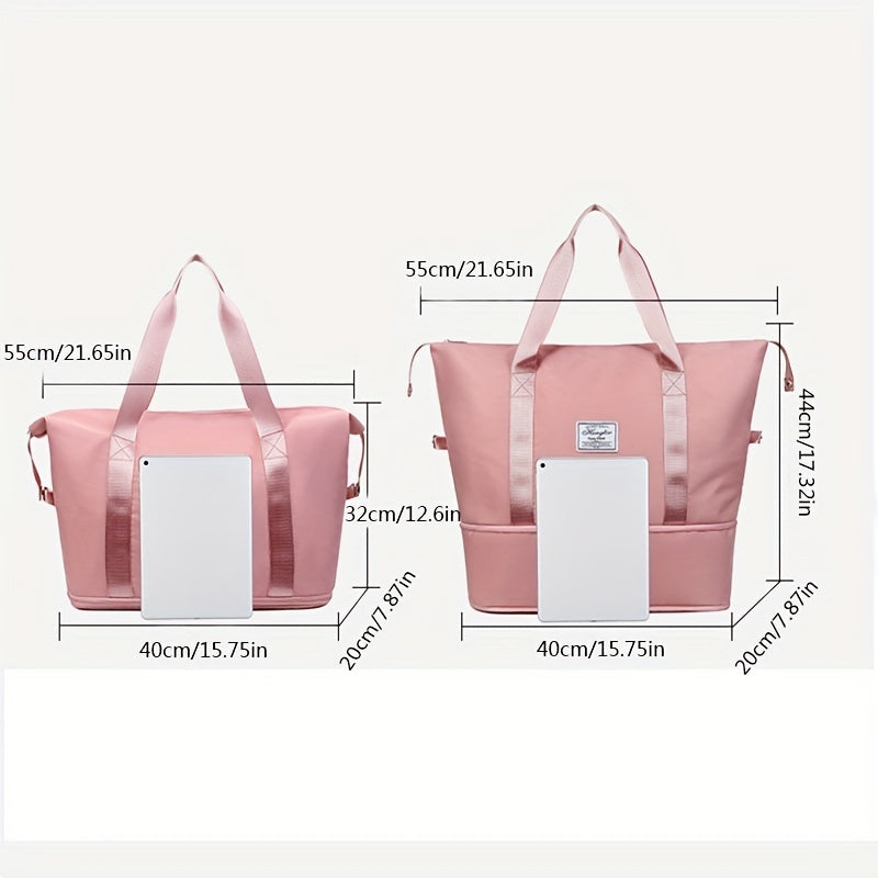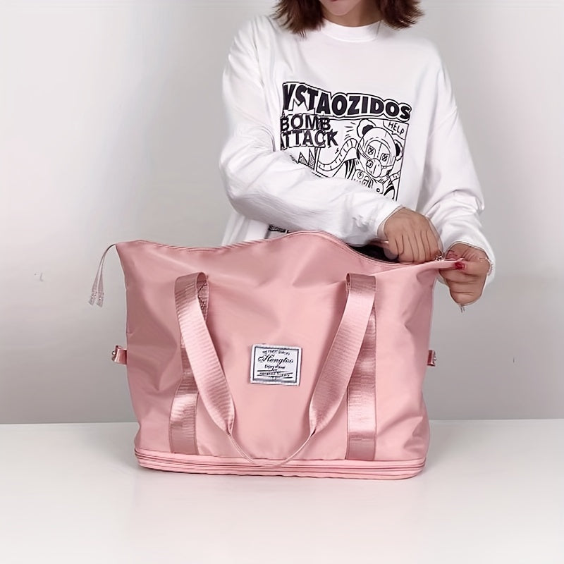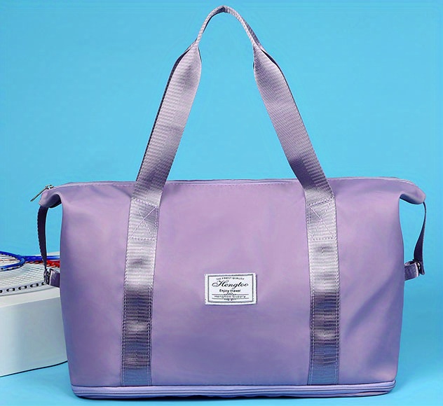 Solid Color Travel Duffel Bag, Large Capacity Foldable Lightweight Weekender Bag, Dry And Wet Separation Overnight Bag