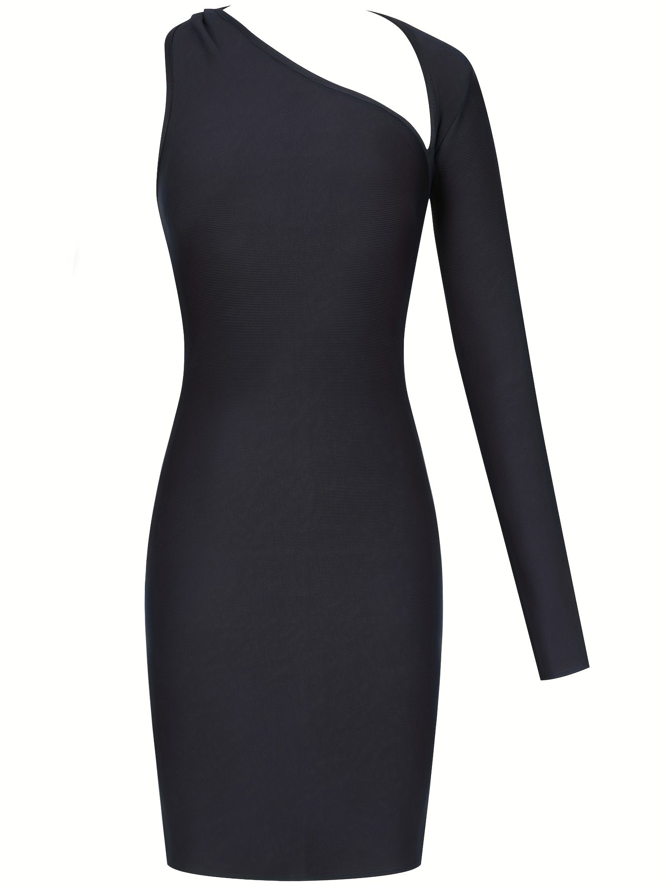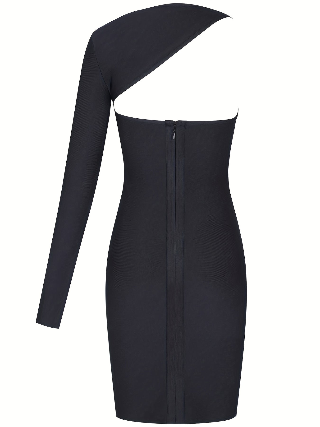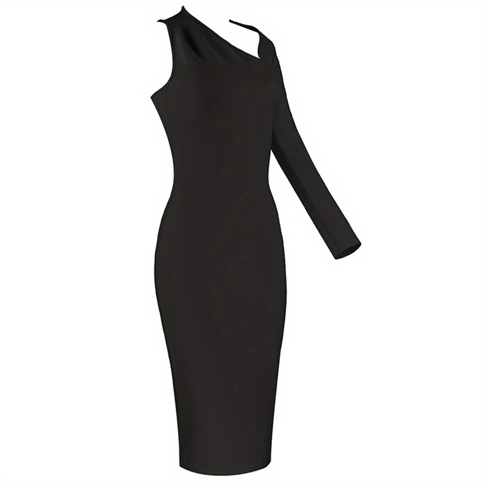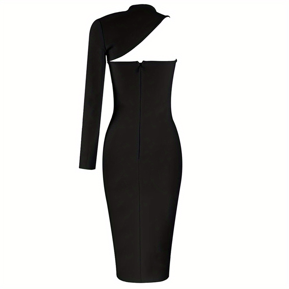 Solid Cut Out Asymmetrical Dress, Elegant Bodycon Slim Pencil Dress, Women's Clothing