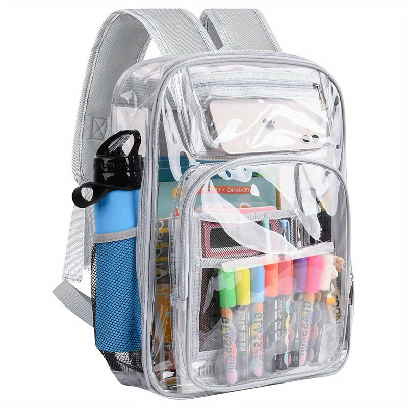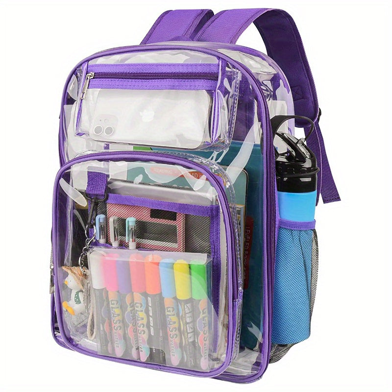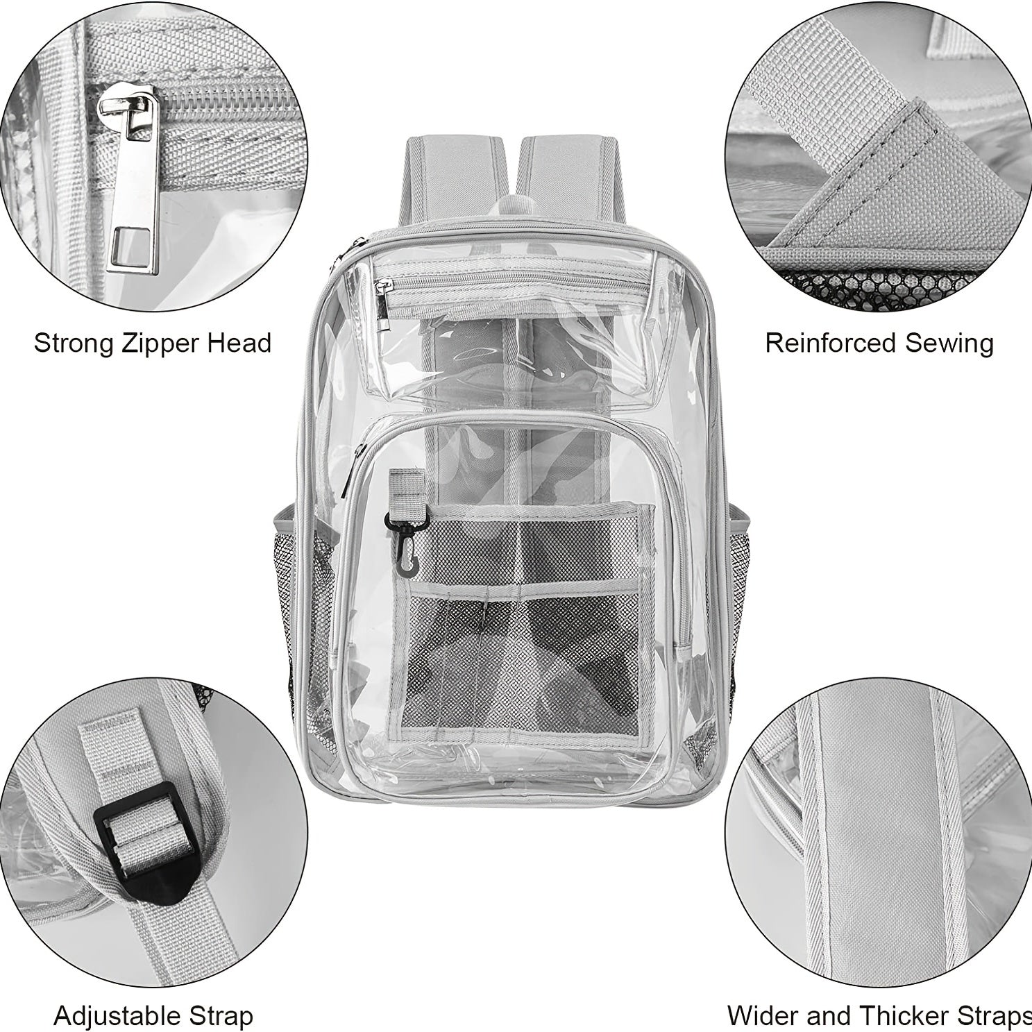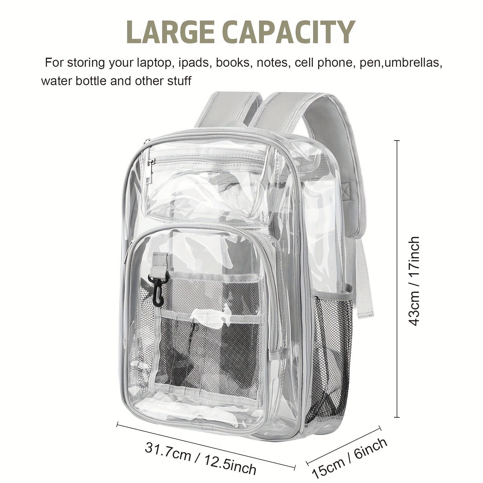 Student Clear Backpack, Large Heavy Duty PVC Transparent Backpack, See Through With Reinforced Straps Backpack Clear Bookbag For School, Sports, Work, Travel, College,Grey Black Pink Purple