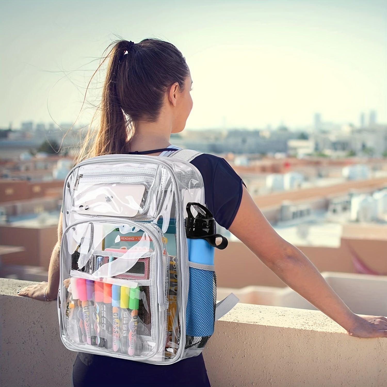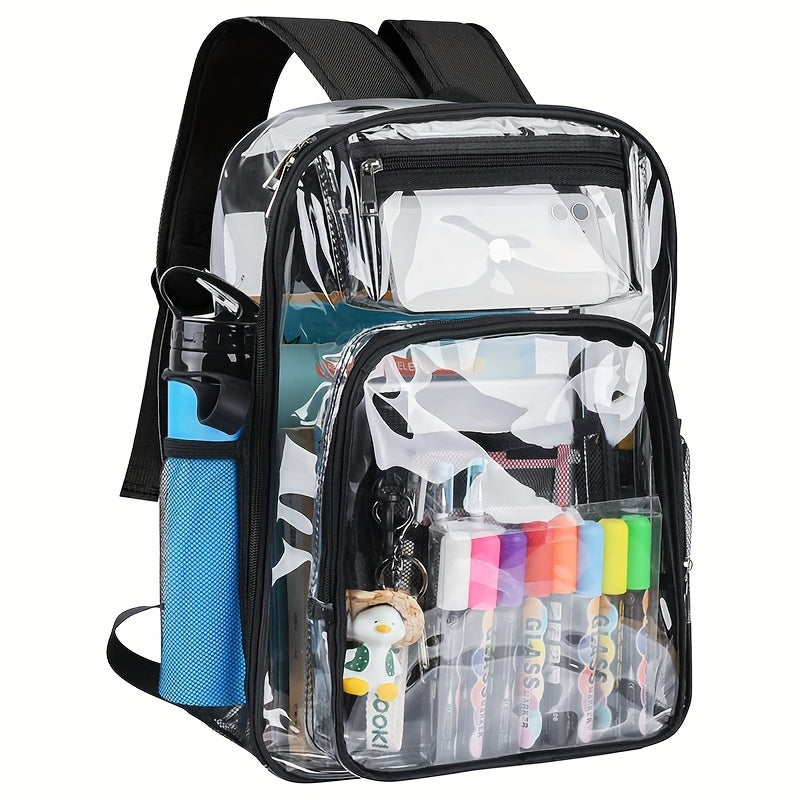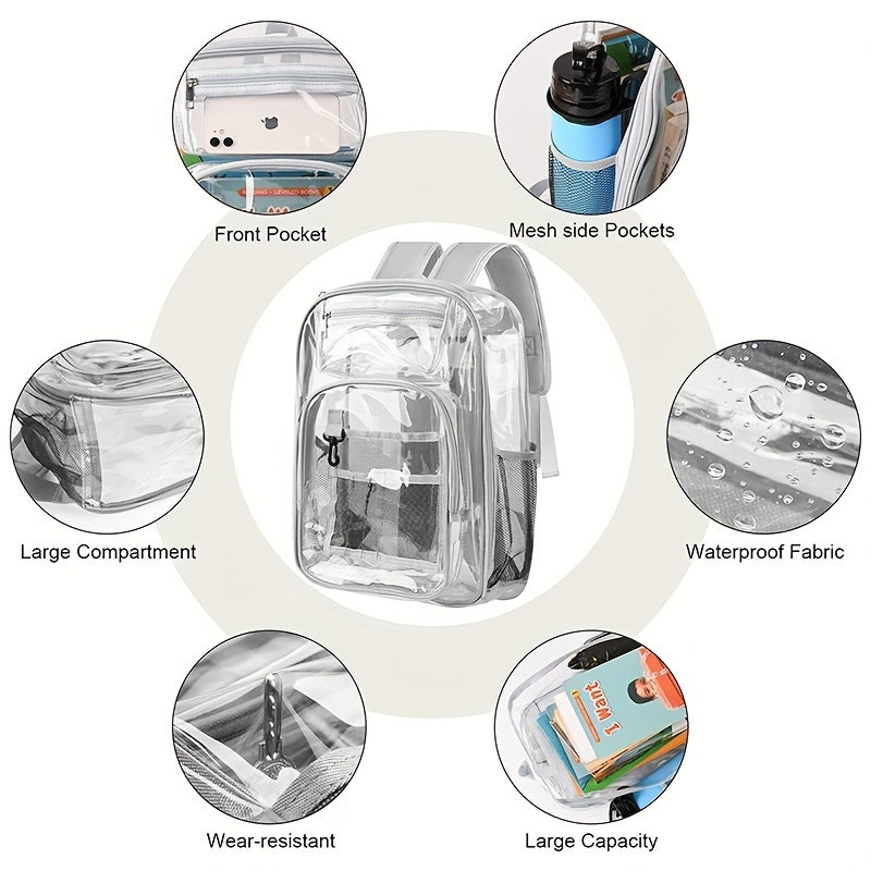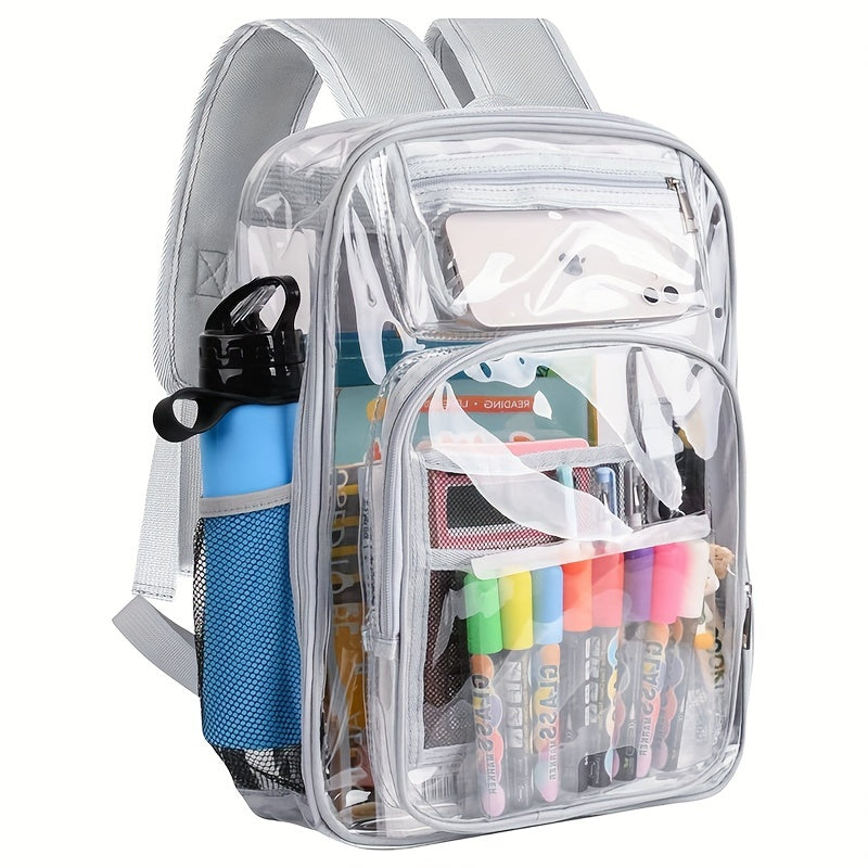 Student Clear Backpack, Large Heavy Duty PVC Transparent Backpack, See Through With Reinforced Straps Backpack Clear Bookbag For School, Sports, Work, Travel, College,Grey Black Pink Purple