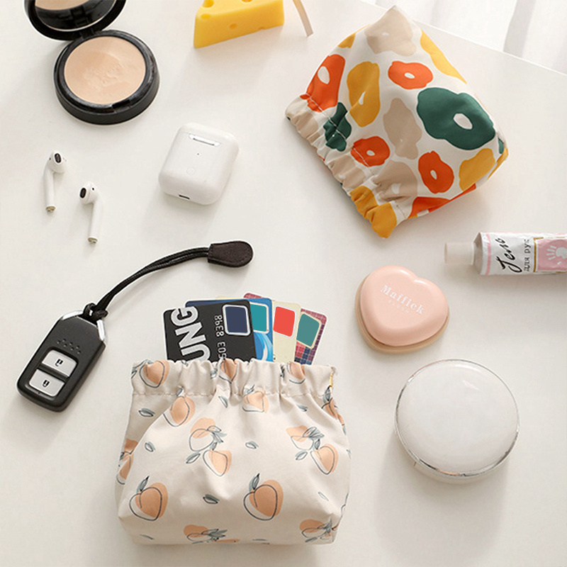 Stylish Print Cosmetic Bag, Portable Versatile Coin Purse With Automatic Lock, Versatile Pouch