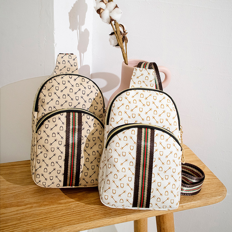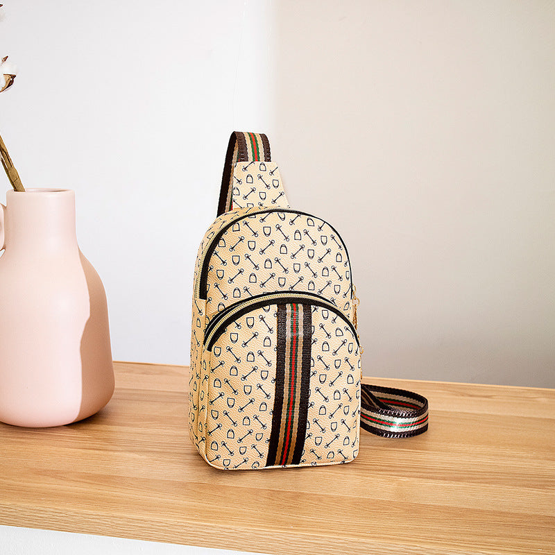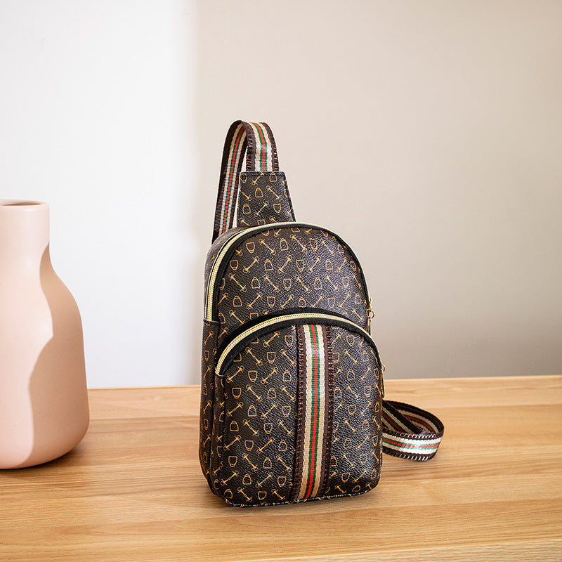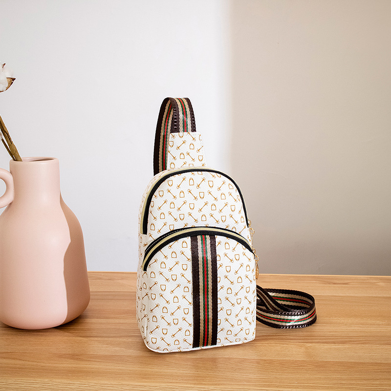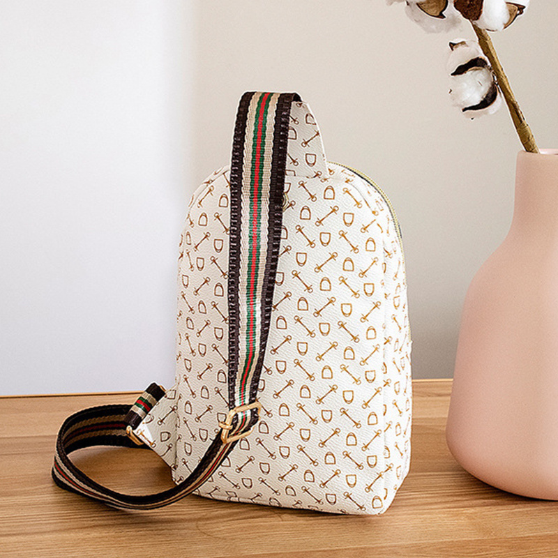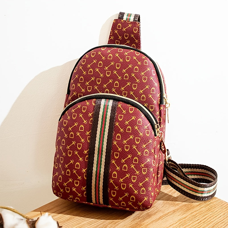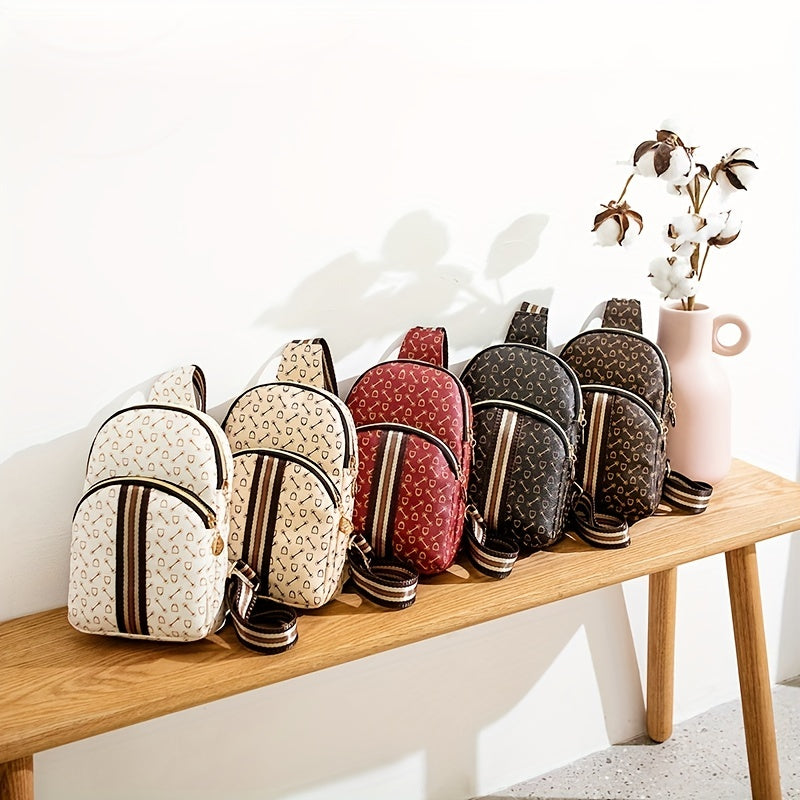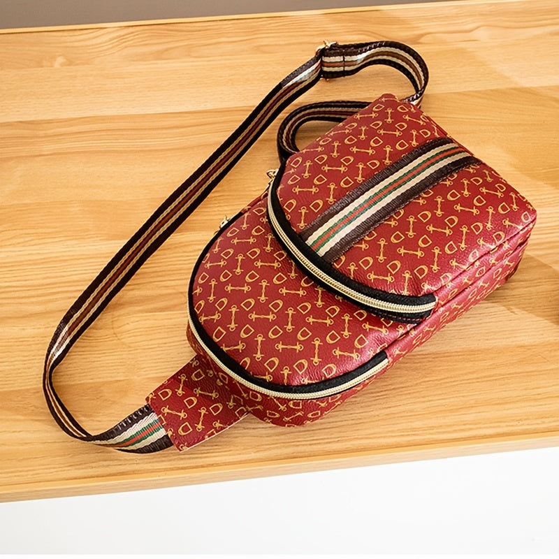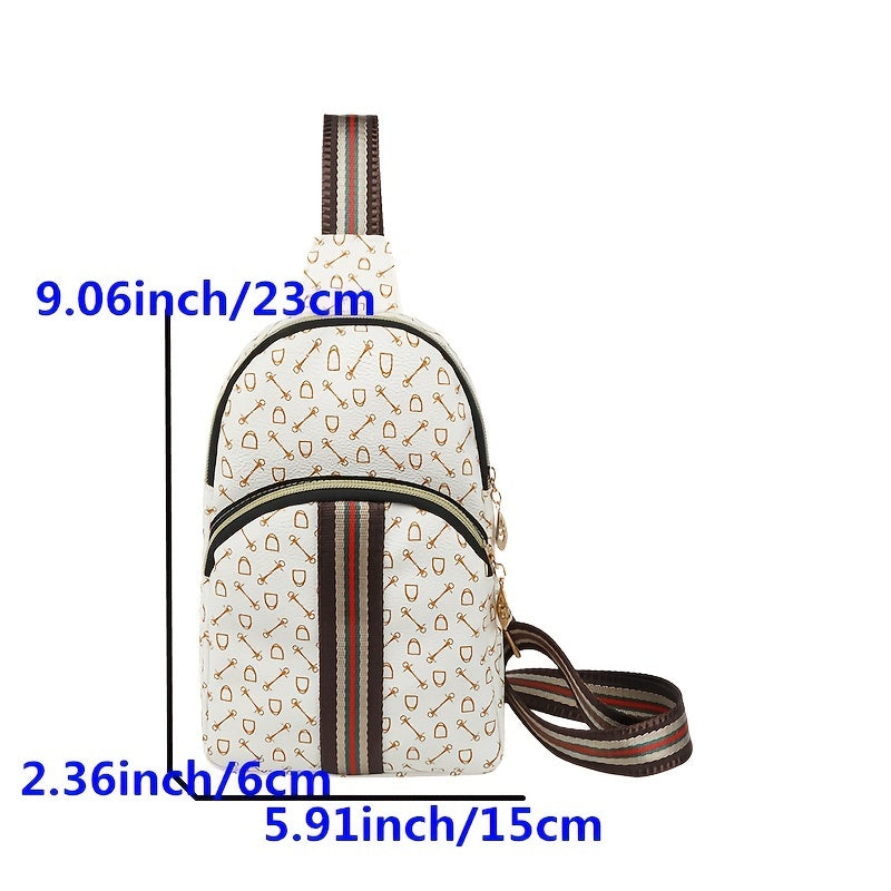Stylish Printed Sling Bag, Women's Zipper Crossbody Bag, Striped Strap Chest Purse For Sports