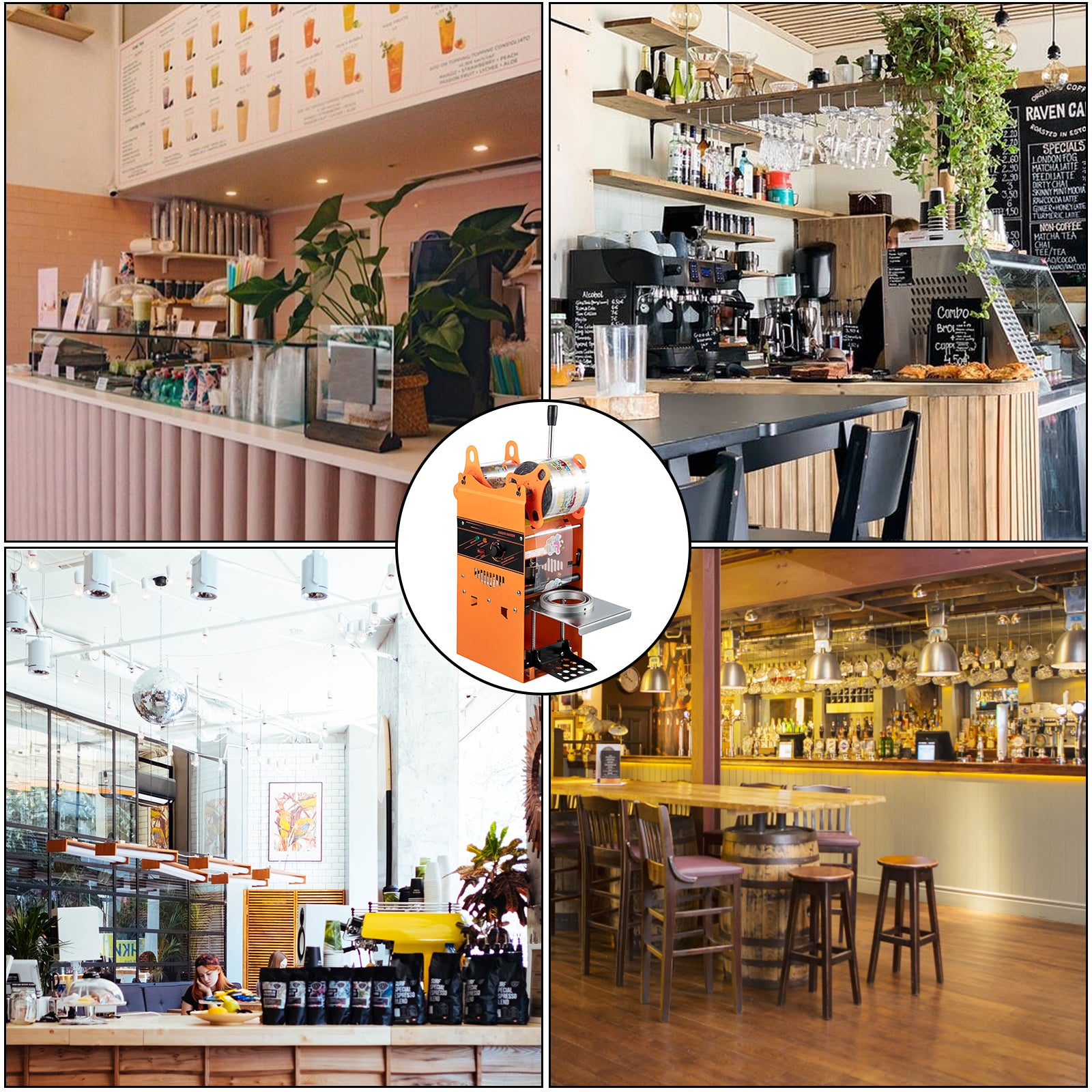 【FARRANGING SCENARIOS】- The cup sealing machine is designed to seal cup drinks, milk tea, soybean, ice and hot coffee, smoothies, etc., ideal for drink restaurants, beverages factories, and milk tea shops.