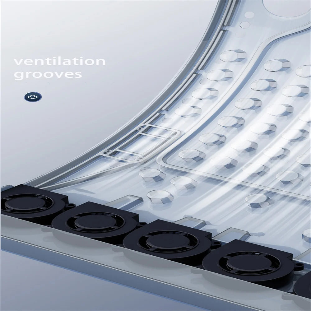 A quiet fan draws in air through the front vent of car pad