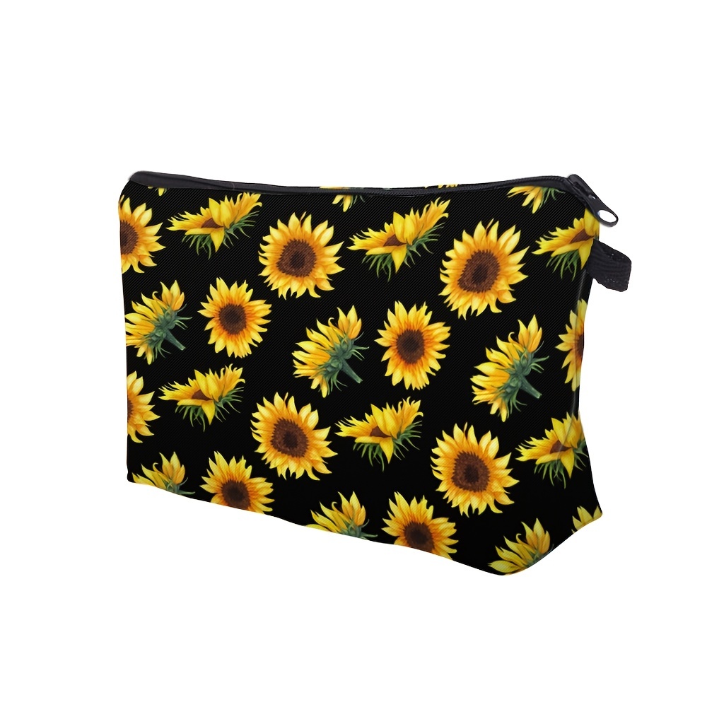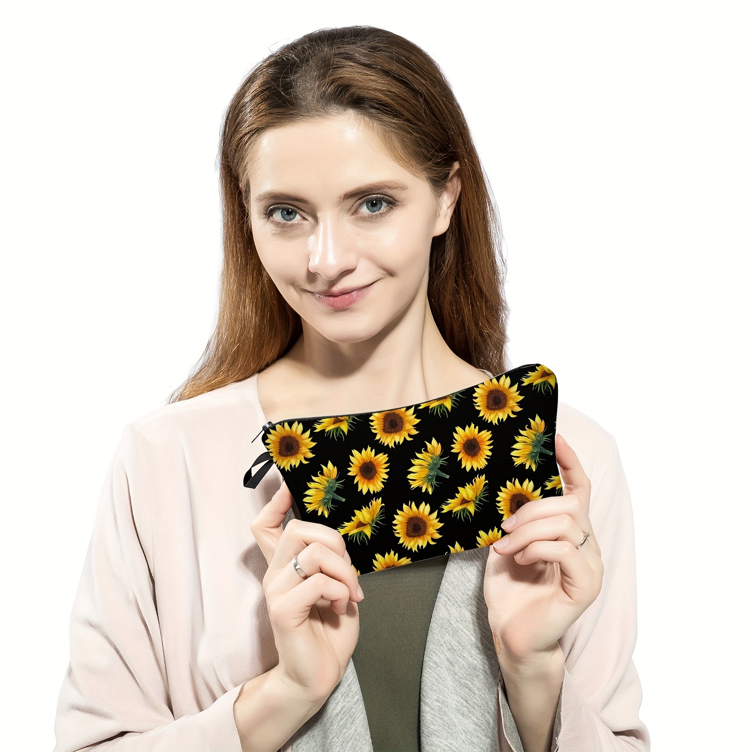 Sunflower Pattern Zipper Storage Bag, Versatile Storage Pouch, Lightweight Cosmetic Bag