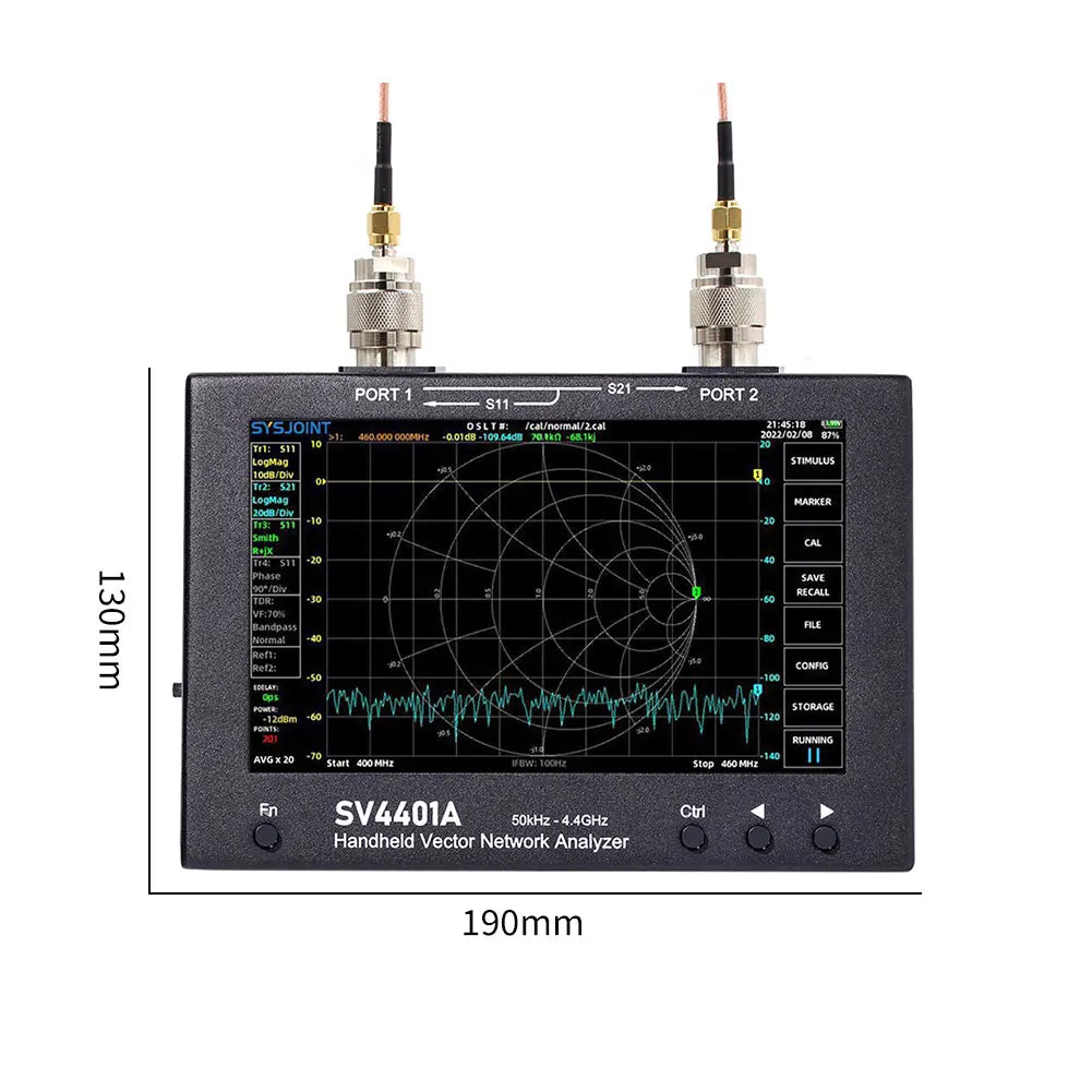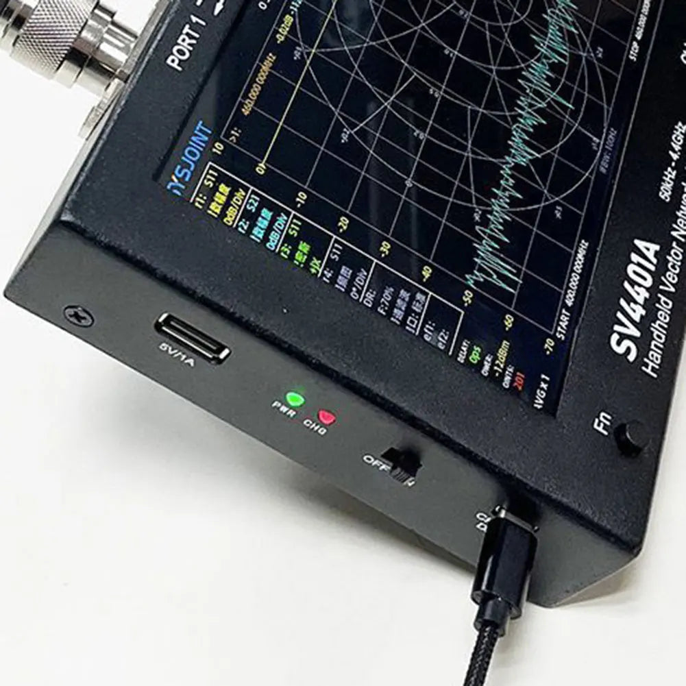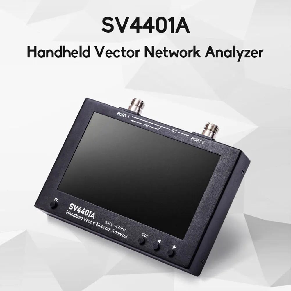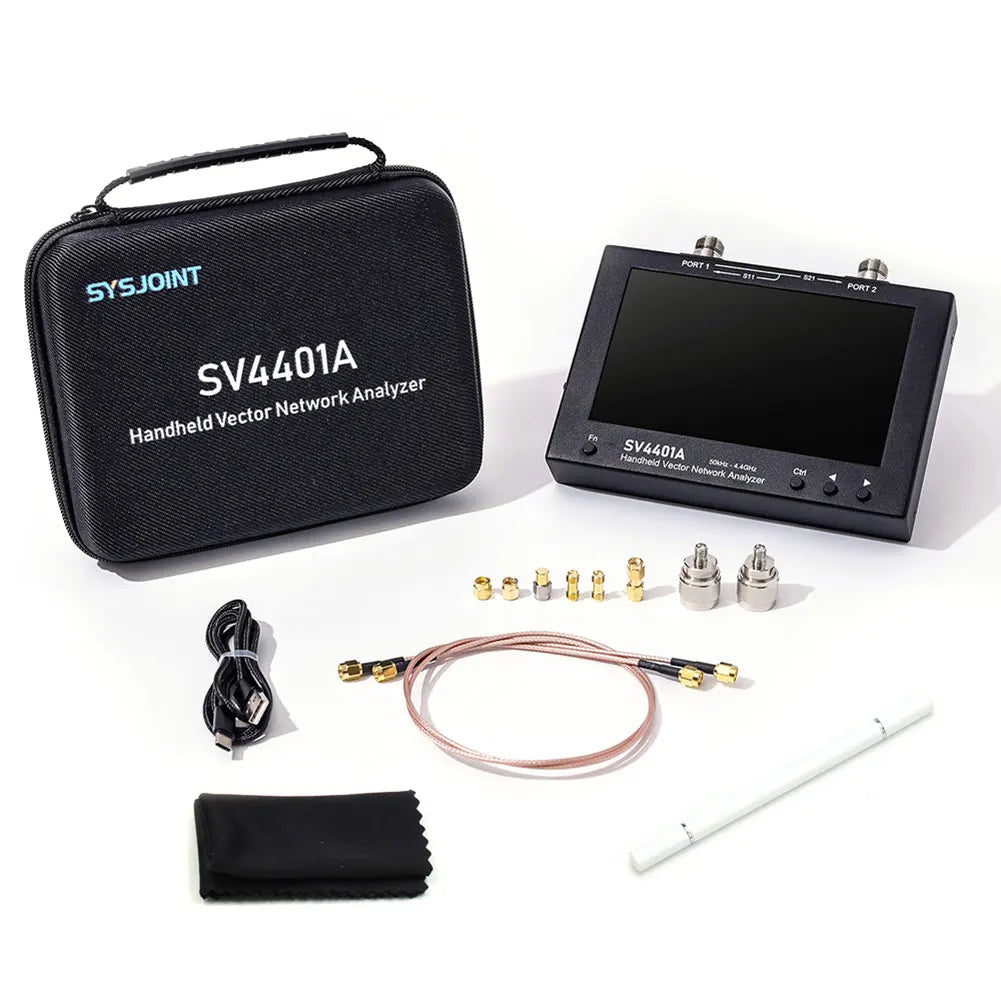 SV4401A Handheld Vector Network Analyzer 100DB Dynamische 50KHz-4.4GHz Network Antenna Analyzer MF/LF/HF/VHF/UHF 7inch LCD Screen Feature: 1.Cutting-Edge Technology: Our handheld vector network analyzer, with an operational range of 50KHz to 4.4GHz, meets international certification standards and is proudly FCC and CE certified. It offers quick and accurate operations and is easily portable due to its compact size. 2.Advanced Display & Battery: With its 7-inch IPS high-brightness LCD screen and capacitive touch control, this network antenna analyzer offers optimal visibility. It's powered by a 18650 lithium battery that provides up to 4 hours of runtime and can be conveniently charged through a USB Type-C interface. 3.Exceptional Measurement Capability: This VNA analyzer excels with a 100dB dynamic range and an optimized RF front-end circuit that ensures accurate and reliable measurements. It offers a frequency range of 50KHz to 4.4GHz, making it suitable for measuring a variety of antennas, filters, amplifiers, attenuators, cables, duplexers, couplers, and more. 4.Storage & Versatility: This vector netwerk analyzer comes with a built-in 8GB storage card for saving calibration states, screen captures, and SNP files. Its human-friendly interface supports multiple display formats like logarithmic amplitude, phase plot, group delay, Smith, polar, and more. It also provides 12 save/call slots for quick storage and retrieval of calibration states. 5.Durable Design: Housed in an all-metal shell for effective electromagnetic interference shielding, the antenna analyzer is designed for lasting durability. It enables one-handed operation, thanks to its ergonomically designed back support. The device also comes with a TDR function for measuring cable length and identifying cable breaks, catering to an array of your technical needs. Specification: Frequency range: 50KHz-4.4GHz ![]()
