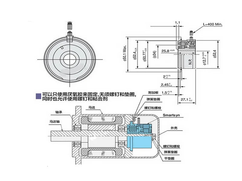 The perpendicularity between the resolver and the motor is kept within 0.050mm (TIR)