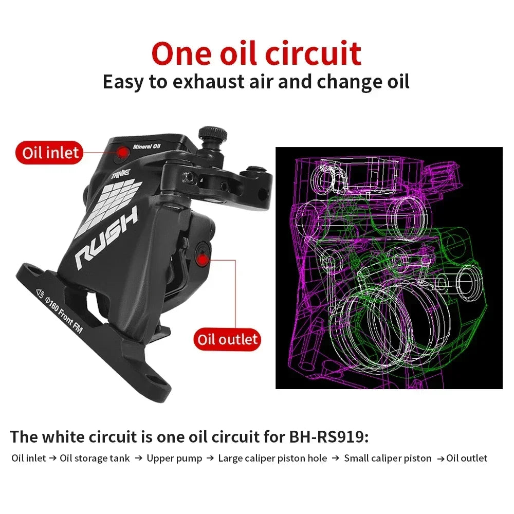 TANKE Line Pulling Oil Pressure Calipers Hydraulic Disc Brake  Road Bike Brake Set RUSH Front Rear 160MM Scooter Bicycle Parts