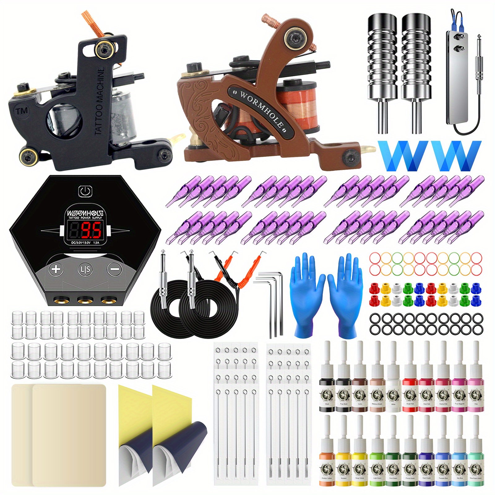 Tattoo Machine Kit, Complete Tattoo Kit, With 2 Tattoo Guns Coil Machine Kit, Power Supply ,Foot Pedal Tattoo Needles, Tattoo Ink, Tattoo Grip Tattoo Tips
