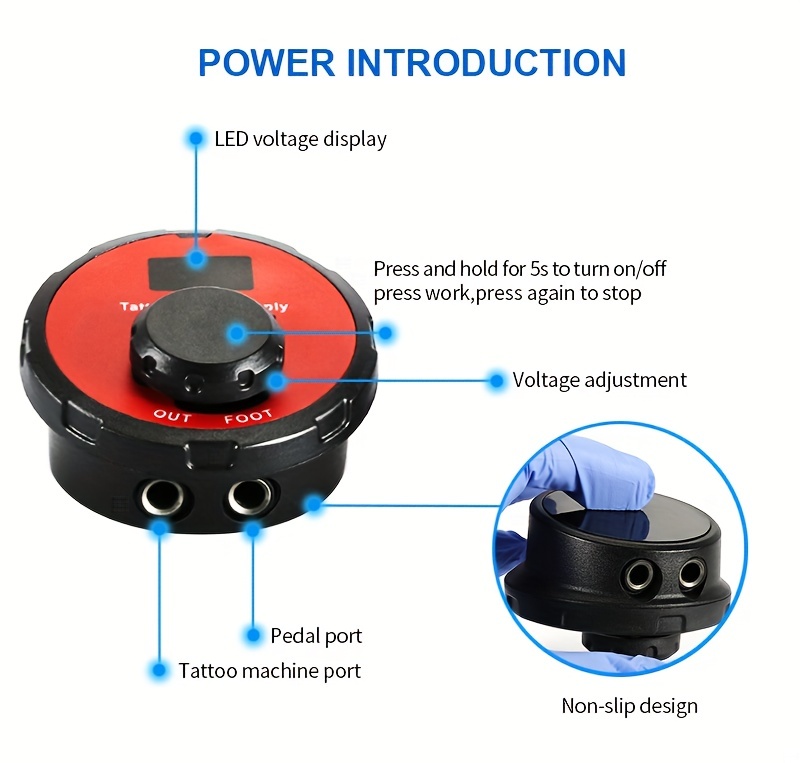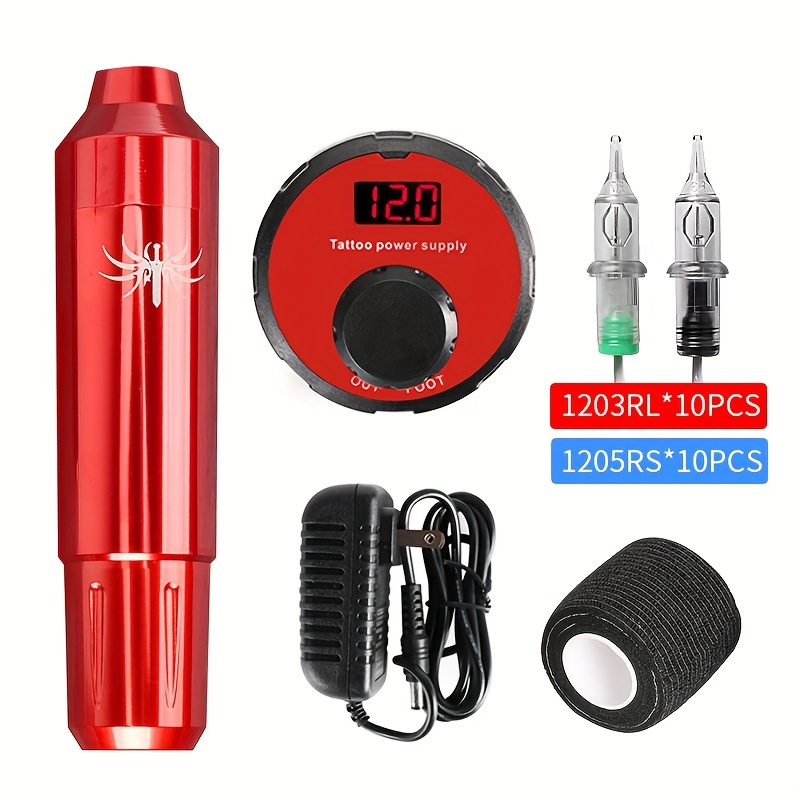 Tattoo Machine Kit, Tattoo Power Supply, Rotary Pen With 20pc Cartridges Needles