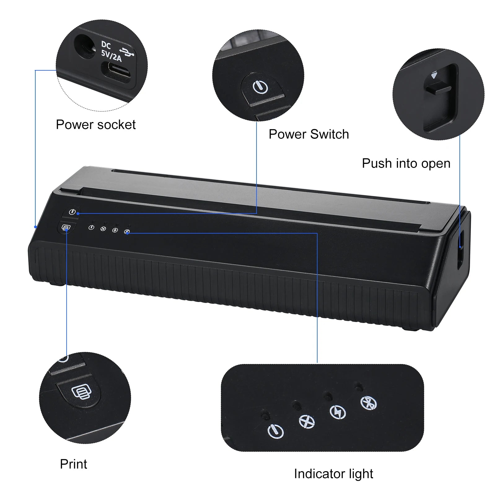 Built-in 2500mAh rechargeable batterys, working in low noise, the thermal printer does not need ink cartridge when using, low operation costs.