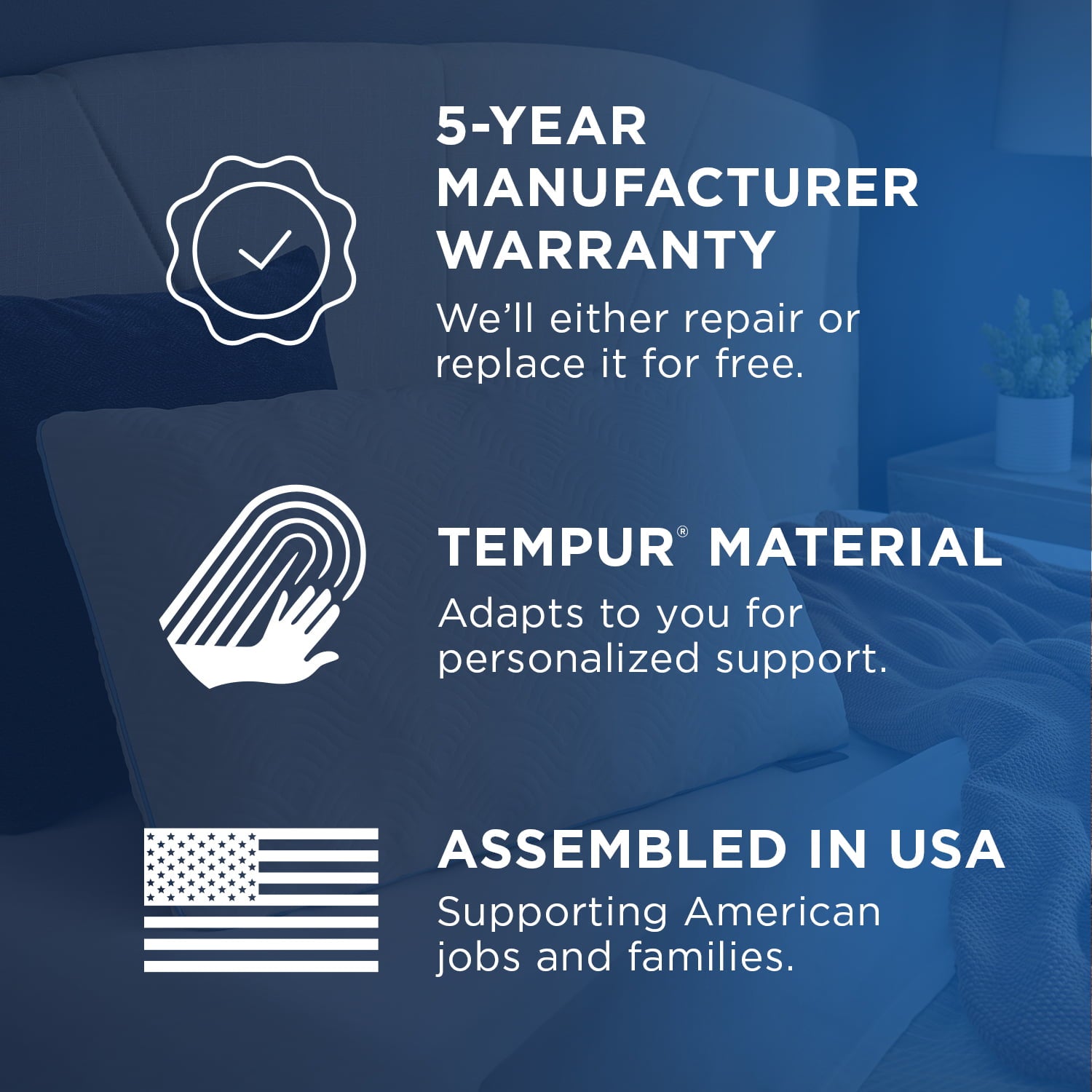 • Featuring an adjustable blend of the same technology found in our mattresses for one-of-a-kind pressure relief and support